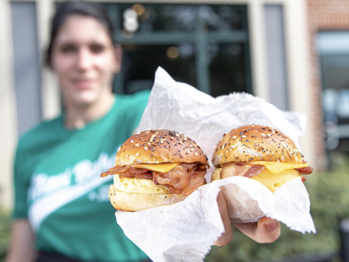 We love just about everything at this skillful bakery — opened in 2018 by former Pike Central Farm Market vendor Caroline Yi — and the signature Breakfast Sandwich is no exception. Like the shop’s other offerings, it excels in both ingredients and execution, with a tasteful result. Inside a buttery toasted brioche bun spread lightly with house aioli, the thick-cut bacon is smoky and crisp, the scrambled eggs are soft and silky, and the melted Swiss oozes gently. Neither unwieldy nor overly filling, it’s just right. Sunday Morning Bakehouse at Pike & Rose, 11869 Grand Park Ave., North Bethesda, (240) 669-8202, sundaymorningbakehouse.com.