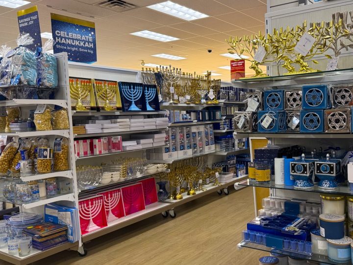 Just about every store is brimming with Christmas regalia at this time of year, but finding a good selection of Chanukah decor can seem like a miracle. Ready to spend some gelt? We’ve scoped out the two best spots in Rockville for Chanukah goods: HomeGoods at White Flint Plaza (off Nicholson Lane) and Homesense at Montrose Crossing (off Rockville Pike). Both stores are owned by TJX Company, so there’s some overlap in what they carry. But you’ll find plenty to choose from at either one: menorahs and candles of all kinds, festive dishes, mugs, latke platters, dreidel lights, porch signs, throw pillows and lots of Chanukah tchotchkes. At HomeGoods, the Chanukah merchandise covers several aisles at the back right section of the store. At Homesense, it’s scattered among a half-dozen kiosks on the store’s left side.