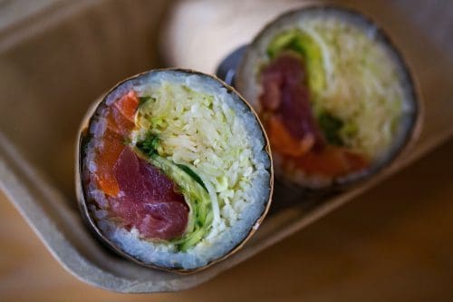 For sushi lovers, this month’s big news is the opening of Buredo at Wildwood Shopping Center. This is the third location for the D.C.-based chain, which serves up burrito-sized sushi rolls wrapped in seaweed instead of tortillas. Shown here: the Beatrix, featuring a mix of tuna and salmon sashimi, cucumber, pickled cabbage, green onion and tempura crunch topped with unagi sauce. To see what else is on the menu, click here.
